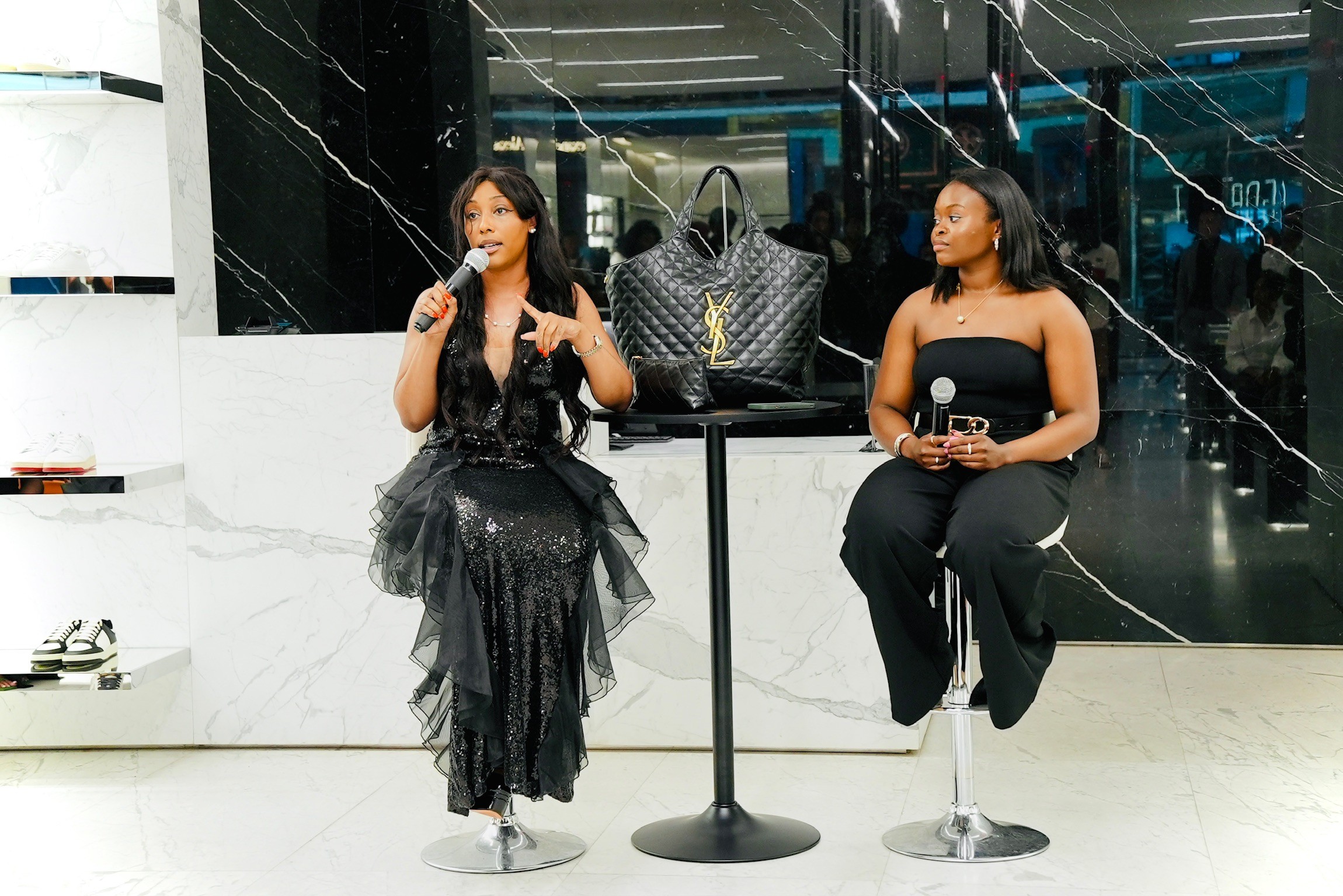 The event also featured a shopping experience, where guests could explore Saint Laurent's latest collections. Attendees were immersed in innovative tech-driven experiences, including a virtual reality fashion showcase and interactive digital art installations created by talented female artists.