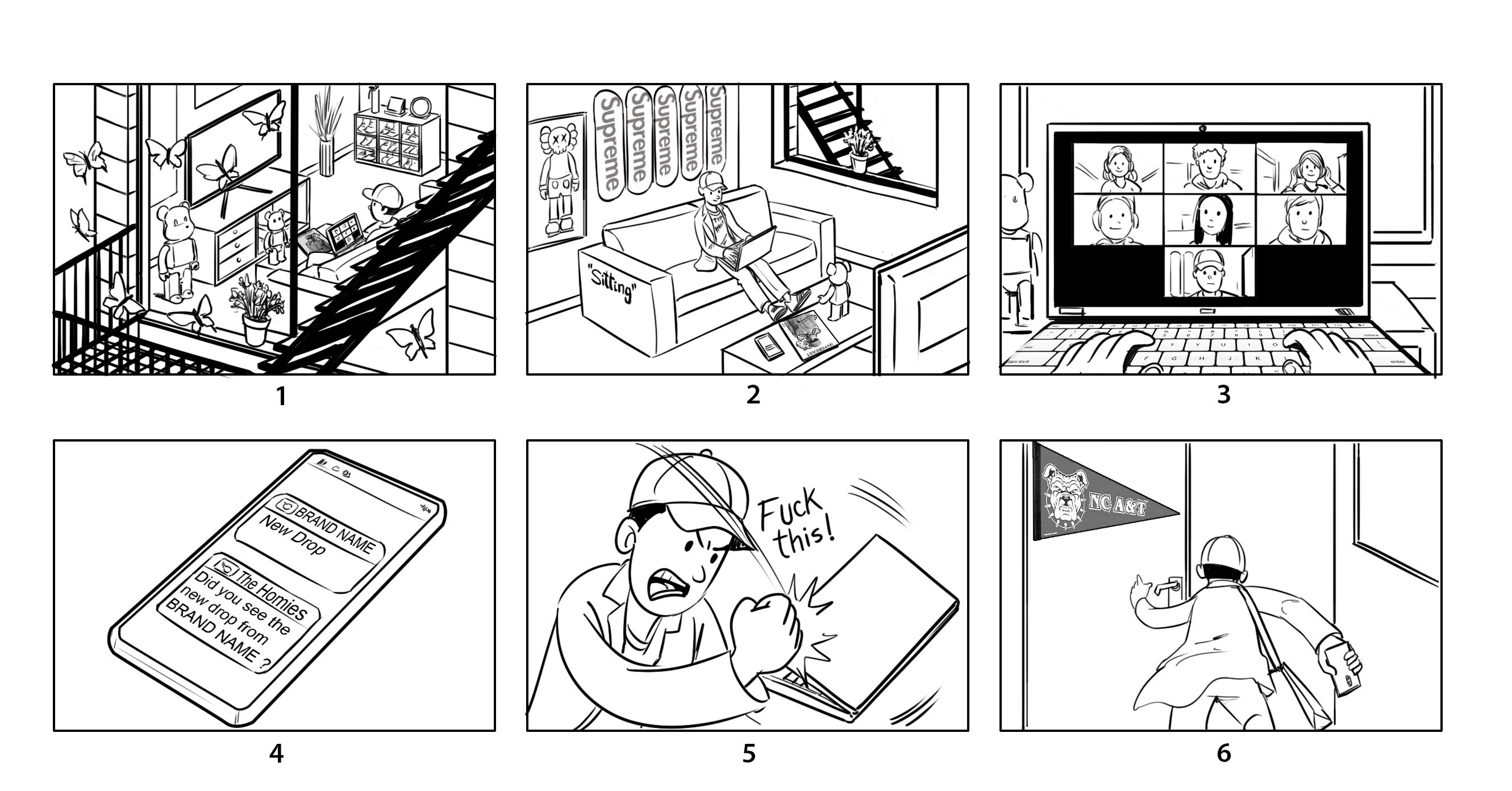 My current creative practice is a story at the intersection of status, culture, and influence in fashion. At the center of the works is a prominent figure named Hunter Shops. The character represents the aspirational hypebeast consumer in his post-college first job stage of life.